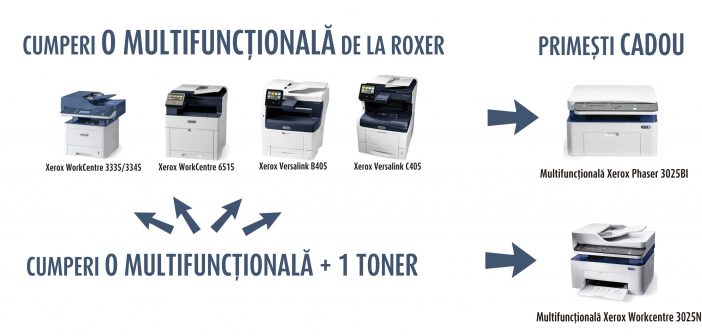 Roxer Grup şi Xerox România au pregătit o nouă promoţie pentru finalul acestui an (valabilă până în 31 decembrie) pentru clienţii care doresc să-şi achiziţioneze imprimante sau multifuncţionale Xerox. Mai jos aveţi toate variantele prin care puteţi primi cadou un al doilea echipament din partea noastră. Specificaţiile pentru toate imprimantele şi multifuncţionalele din promoţie se găsesc…