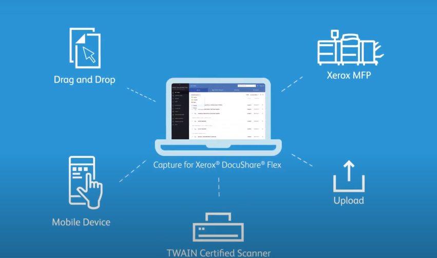 Soluția DocuShare reprezintă o bibliotecă electronică de arhivare a documentelor cu acces securizat și controlat. Aceste documente sunt de obicei scanate folosind echipamente specializate, sunt procesate și în final ajung în gestiunea DocuShare. Aplicaţia va avea o scurtătură pe ecranul tactil al imprimantei prin Xerox ConnectKey.